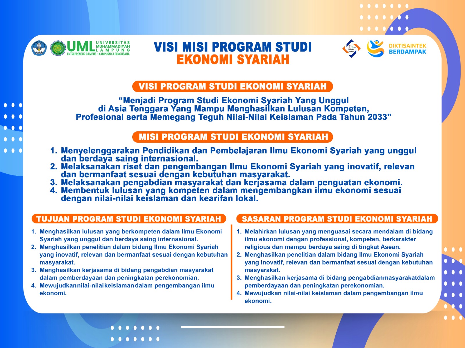 1. Menghasilkan lulusan yang profesional di bidang ilmu ekonomi syariah sesuai dengan Visi. Kedepan FAI UML akan melakukan tahap untuk mewujudkan fakultas yang unggul dengan kehidupan kampus yang Islami sesuai yang tertuang dalam RIP.
